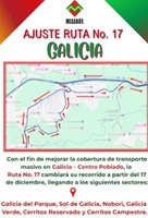 Que es la que lleva el servicio hacia Galicia en las afueras de Pereira. Específicamente la demarcada con el recorrido Centro-El Poblado-Galicia. Y no se descarta que haya más modificaciones a medida que se produzca la entrega de glorietas y más facilidades para agilizar el tráfico vehicular que vienen siendo construidas en el estratégico sector , por parte del programa “Vías del Saman”.