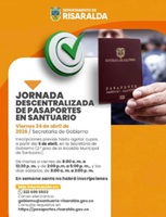 Con el propósito de facilitar el trámite del pasaporte a los residentes del municipio de Santuario, la Gobernación de Risaralda llevará su jornada descentralizada de la Oficina de Pasaportes al municipio, conocido como la ‘Perla del Tatamá’, el próximo viernes 24 de abril.